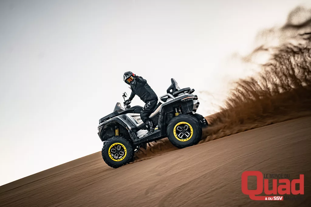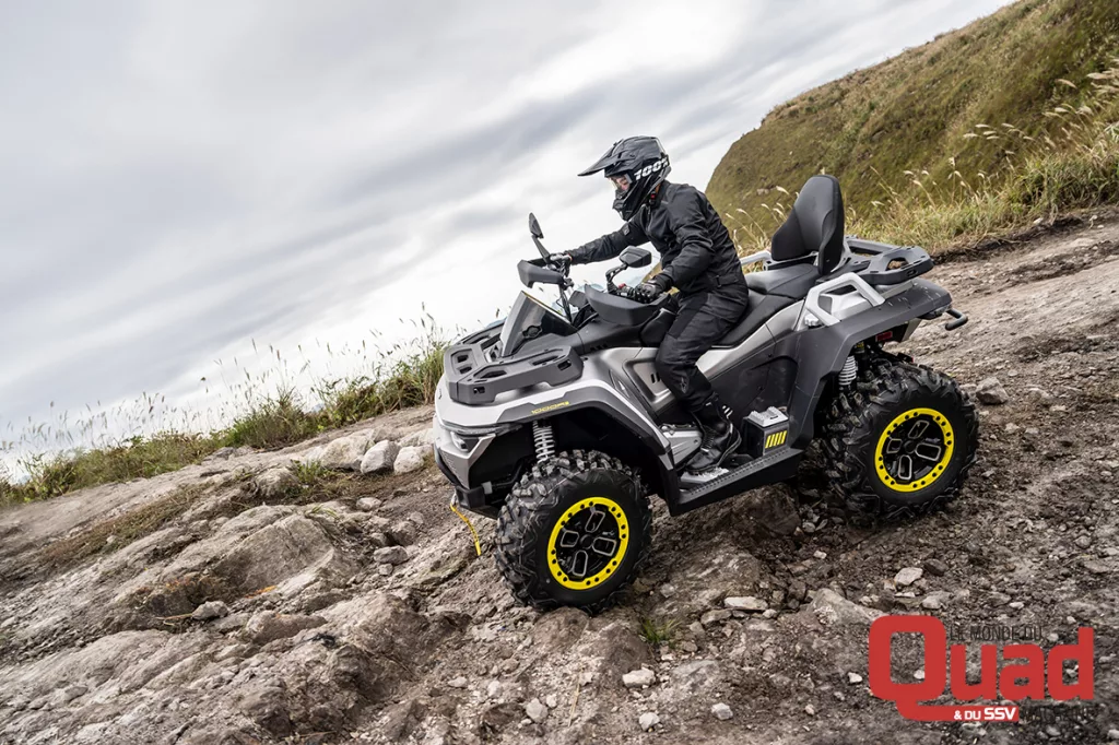 Pour les utilisateurs en quête de puissance, le Redstone 1000 arrive avec des arguments lourds. Son bicylindre en V revendique 98 ch et 92 Nm, faisant de lui l’un des quads les plus puissants de sa catégorie. Conçu uniquement en version Chassis Long Edition Premium ABS, il adopte un équipement très complet : ABS, direction assistée, suspension à gaz réglable, treuil 3500 lbs, jantes aluminium 14’’, siège et poignées chauffantes… Le tout à un tarif annoncé de 11 999 € TTC.