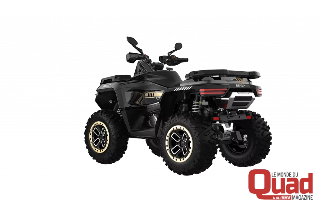Le Redstone 550 constitue la porte d’entrée dans l’univers quad BENDA. Particularité notable, il s’agit du seul quad 500 cm³ du marché à bénéficier d’un moteur bicylindre en V, affichant 48 ch pour 46 Nm. Trois déclinaisons seront proposées, toutes homologuées T3 :
