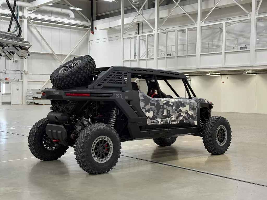Imaginé par les ingénieurs nord-américains de Toyota Performance Development, le Scion 01 réinterprète l’esprit des SSV dans un format plus extrême. Sous la carrosserie inspirée du rallye-raid, on retrouve un quatre cylindres hybride turbo dérivé des pick-up Toyota. Développant plus de 300 chevaux, il propose un mode électrique silencieux pour les passages en milieu naturel, preuve que la performance et la sobriété peuvent cohabiter.