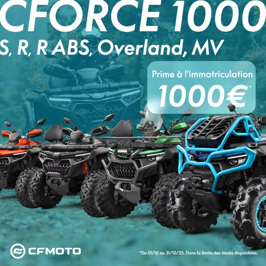 Les déclinaisons S, R, R ABS, Overland et MV du CFORCE 1000 bénéficient toutes d’une prime à l’immatriculation de 1 000 €.