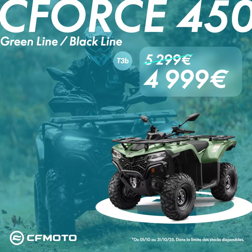 Le constructeur CFMOTO met en avant sa gamme de quads homologués T3b avec une série d’offres promotionnelles valables cet automne. L’occasion de s’équiper à tarif préférentiel… et parfois avec un cadeau en prime.