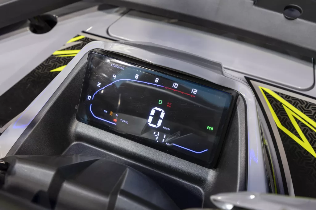 La marque apporte une nouvelle vision du quad électrique en intégrant une architecture à double moteur, avec un bloc de 10 kW à l’avant et un second de 22 kW à l’arrière. Cette configuration permet une transmission 2WD/4WD enclenchable à la demande, offrant un couple instantané et une motricité adaptée aux terrains exigeants. L’énergie est fournie par une batterie 100 V. Balistron annonce jusqu’à 120 km d’autonomie à vitesse stabilisée de 55 km/h en mode 2WD. Côté recharge, deux solutions sont prévues : un chargeur embarqué permettant de passer de 30 à 80 % en environ quatre heures, et un chargeur rapide optionnel ramenant ce délai à 90 minutes sur la même plage de charge.
