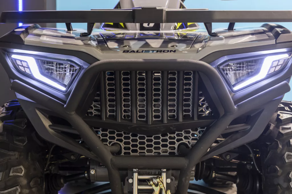 Conçu pour l’off-road, le TQ repose sur un châssis associé à des suspensions à double bras triangulés offrant une garde au sol de 220 mm. Le freinage est confié à des disques, complétés par un contrôle de traction. Un treuil avant et une capacité de remorquage annoncée à 600 kg positionnent clairement le Balistron TQ comme un quad polyvalent, capable d’assurer aussi bien les tâches utilitaires que les sorties loisir