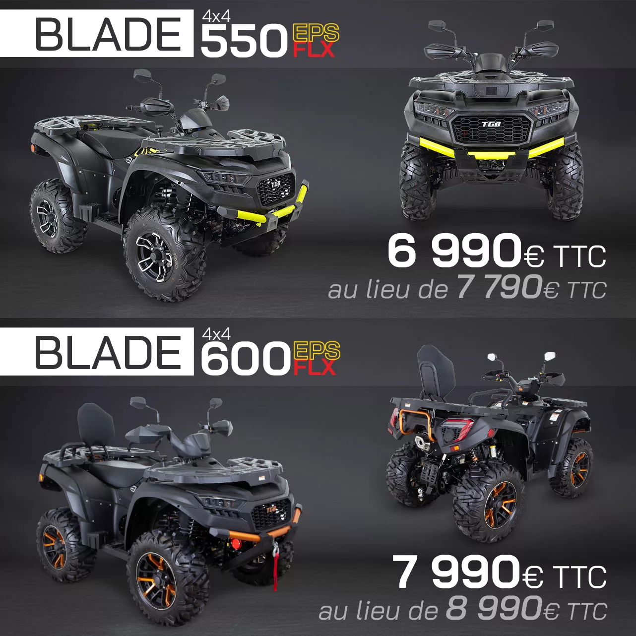 Le constructeur taïwanais TGB frappe fort pour cette fin d’année avec une offre de remise pouvant atteindre 1000 € sur deux de ses quads les plus populaires : les Blade 550 FLX EPS et Blade 600 FLX EPS.